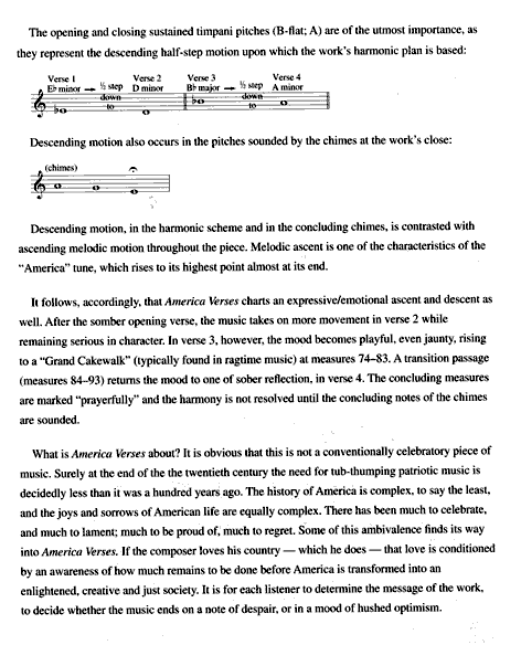 America Verses by Timothy Broege. Hear streaming audio on this page. Suitable for middle school through college bands, 5-1/2 minutes duration, Grade 2.