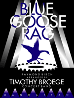 Blue Goose Rag, a piano rag by Raymond Birch, arranged for concert band by Timothy Broege. Hear streaming audio on this page. Suitable for middle school and high school bands and community bands, 2-1/2 minutes duration, Grade 3.