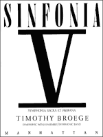 Sinfonia V: Symphonia Sacra et Profana by Timothy Broege. Hear streaming audio on this page. Suitable for college bands, 7 minutes duration, Grade 5.